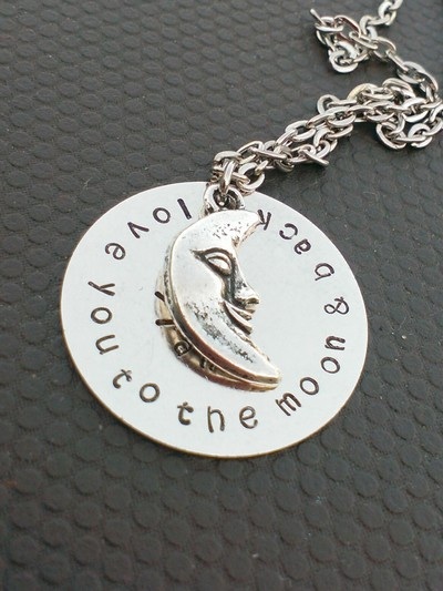~ 1" Stainless Steel Washer ~ Stamped with a saying/names of your choice ~ Moon Charm is included