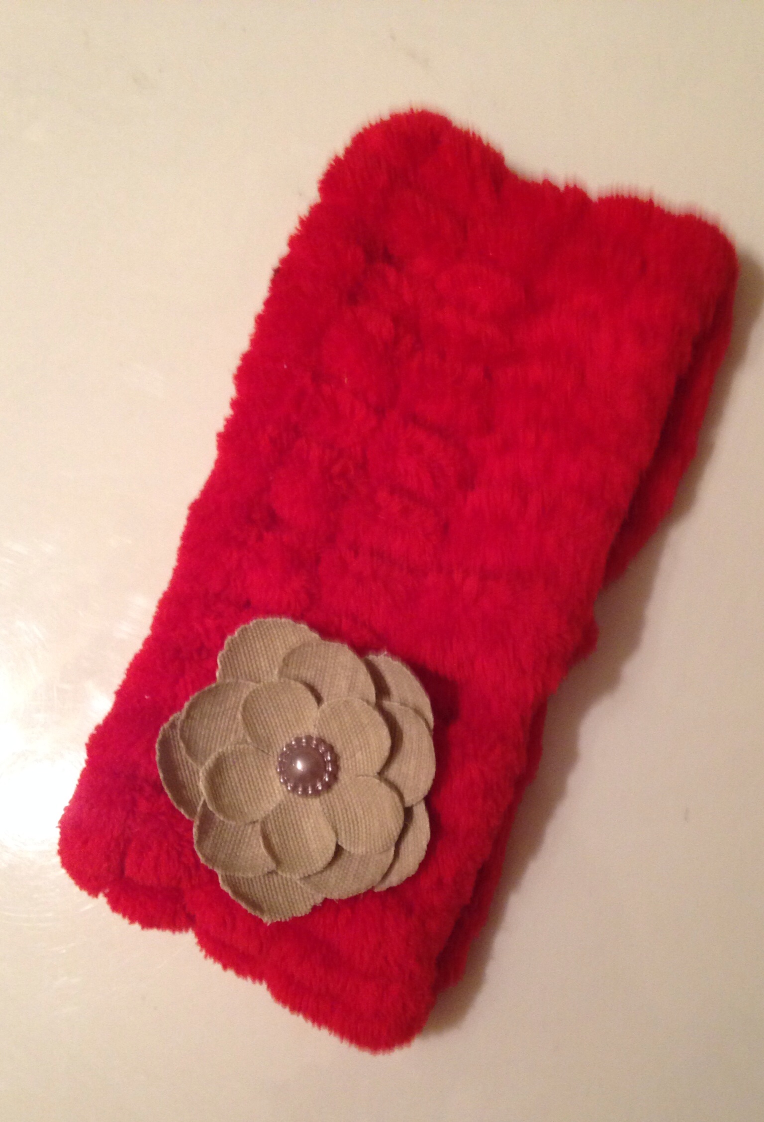 Very stylish and adorable fall/winter headband with a natural flower with a center bead.